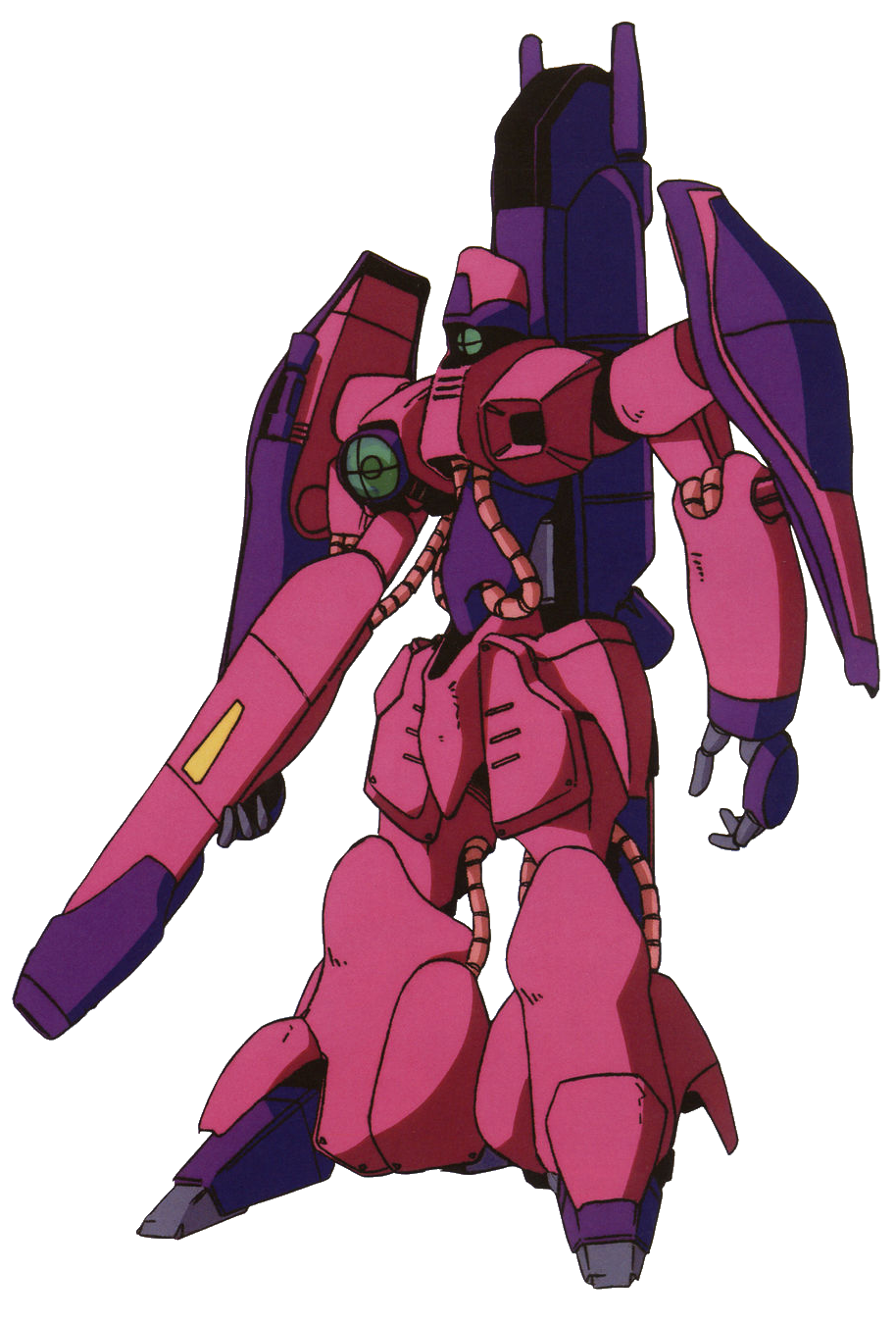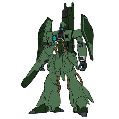 Like many mobile suits designed around the time of the Gryps Conflict, the Gaza-C series from Axis Zeon were built around the concept of a versatile transforming frame. Although the Gaza-C was put into mass production, there were minor flaws in the design, and the manufacturing resources of the Axis asteroid was limited, so many of the Gaza-C's parts were recycled from older Gaza-A and Gaza-B construction mobile suits.