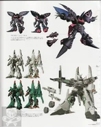 Since the Qubeley Mk-II units were designed for Newtype pilots, they were outfitted with the same miniaturized psycommu system as the original Qubeley so that their pilots can control the remote weaponry known as "Funnels" with their Newtype abilities. However, the AMX-004-3 Qubeley Mk-II has a newer version of the psycommu system installed that allows its pilot to remote-control the mobile suit from outside the cockpit through the use of a psycowave amplifying headset.