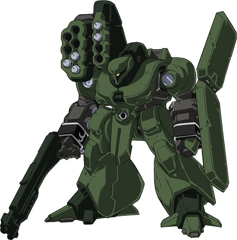 AMX-003 Gaza-C | AMX-004 Qubeley | AMX-004 Qubeley Mk-II | AMX-004G Qubeley Mass Production Type | AMX-006 Gaza-D | AMX-008 Ga-Zowmn | AMX-009 Dreissen | AMX-011 Zaku III | AMX-011S Zaku III Custom | AMX-014 Döven Wolf | AMX-015 Geymalk | AMX-101 Galluss-J | AMX-102 Zssa | AMX-103 Hamma Hamma | AMX-104 R-Jarja | AMX-107 Bawoo | AMX-109 Capule | AMX-117L Gazu-L | AMX-117R Gazu-R | MS-06D Desert Zaku | MS-06F Zaku II | MS-09G Dwadge | MS-09H Dwadge Custom | MS-14J ReGelgu | NZ-000 Queen Mansa | RMS-099B Schuzrum Dias | RMS-106 Hizack | RMS-108 Marasai | RMS-119 EWAC Zack | RMS-192M Zaku Mariner