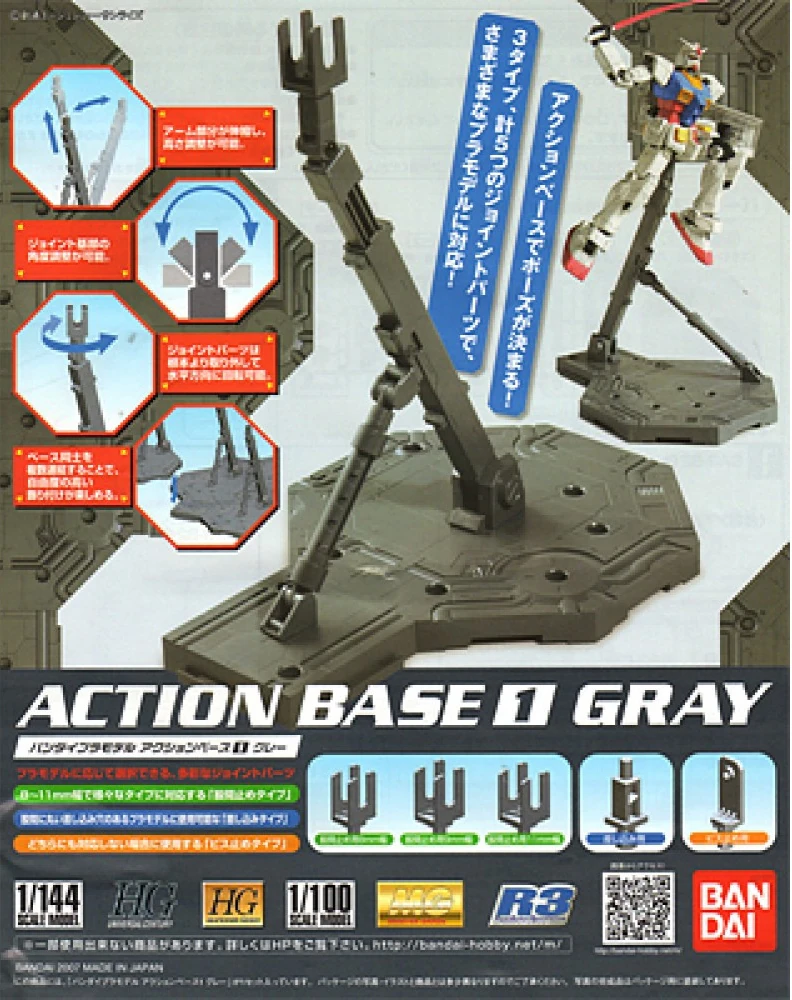Action Base Mini (アクションベースミニ Akushon Bēsu Mini?) is designed primarily for 1/144 scale and SD kits. Each set comes with two Action Bases.