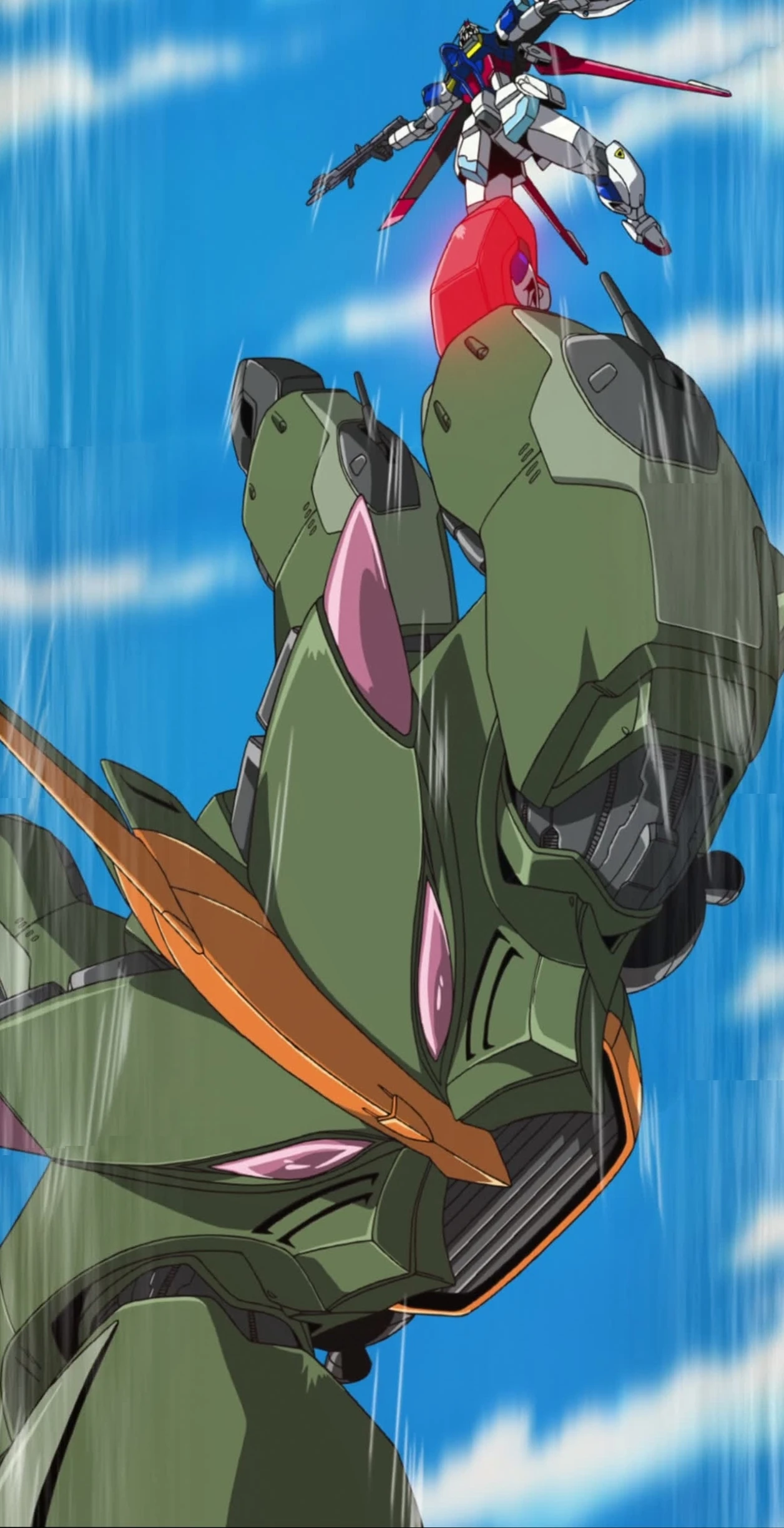 With little choice, the Minerva began to inch towards Orb territory once again, and Yuna ordered Fleet Admiral Todaka to fire a warning shot to stop the ship's movements towards them. Reluctantly, Todaka complied and issued a warning to the Minerva that it would be treated as an intruder if it were to return. Startled that Orb would actually attack them, Shinn was briefly distracted as the Force Impulse was grabbed by the Zamza-Zah's Hyper-oscillation Crusher and has its right leg crushed. Enraged by Orb's actions and desperate not to die, Shinn would activate SEED Mode for the first time and quickly escaped the mobile armor's clutches in order to recharge his unit with the Minerva's Deuterion Beam Energy Transfer System as well as quickly requesting a new Leg Flyer and the Sword Silhouette to deal with the enemy ships. Having rejuvenated his unit, Shinn quickly dashed towards the Zamza-Zah, sacrificing his shield and finally destroying the mobile armor with the beam saber.[3]