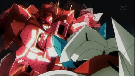 Anew is currently forcing Mileina to bring out the 00 Gundam, but as they then move towards the hanger, they are stopped by Soma. Soma sees the Innovators as being behind everything and blames them for Sergei’s death, however before she can do anything, Setsuna and Lockon find them. Lockon immediately makes a plea for Anew to stop, and he surprisingly accepts her offer to come with her. Setsuna takes the cue to shoot Lockon, and Anew’s genuine concern for him opens up an opportunity for him to grab Mileina. Anew is forced to run, and instead of immediately pursuing, Setsuna first checks up on Lockon who turns out to just have a bruise on his shoulder from where the bullet grazed him. Revive meanwhile makes his way into the hanger and launches with the 0 Raiser. Unable to get the 00 Gundam, Anew has to settle for just a shuttle. Lockon and Setsuna pursue in their respective Gundams, and they’re able to catch up easily by using the Cherudim’s Trans-Am. They also have an additional trump card: the red Haro inside the 0 Raiser that initiates the docking sequence with the 00 Gundam.