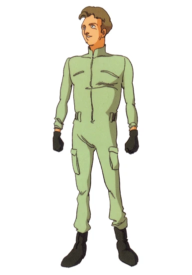 As the chief mechanic aboard the Argama, he and his hard-working crew somehow manage to keep the ship's battered mobile suits in good working order. He also has a keen interest in mobile suit technology and collaborated with Kamille Bidan on designing and upgrading the MSZ-006 Zeta Gundam.[1]