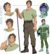 Cucuruz Doan was born in a church orphanage. In his youth he began finding employment with Egba Atler as a mercenary in the build-up to the One Year War. He married a woman, who was born with a hearing impairment, whom he met by chance after she was almost hit by a car, and they would have a son together. In 0075 —as a reward for their rescue of a weapons scientist from a prison transport ship— Doan and Egba were offered a commission by the Autonomous Republic of Zeon to become test pilots for the new Mobile Suits being developed by Zeon, and they formed the Southern Cross Corps.