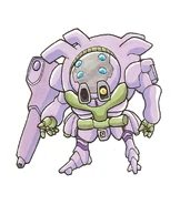 The EMS-12 Arana is the smallest mass production mobile suit employed by the Jupiter Empire, standing at a mere 10 meters, the same height as the older EMS-VSX2 Abijo, and one of the smallest sizes of any known full-scale mobile suit. Like the Abijo one of the Arana's primary characteristics is its speed and mobility. Its agility is further increased by fin-nozzles mounted on the back, the flexible thruster being able to move in all directions to increase mobility.