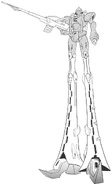 The Carmelo is one of three mobile suits developed for Thoucus without official approval. Designed for coastline attacks, the Carmelo's most notable feature is its long legs that allow Carmelo to stand on the bottom of the river or sea in a shallow area, with only upper body emerging from the water to attack with the long range beam rifle. The legs are also equipped with water jets for aquatic movement.
