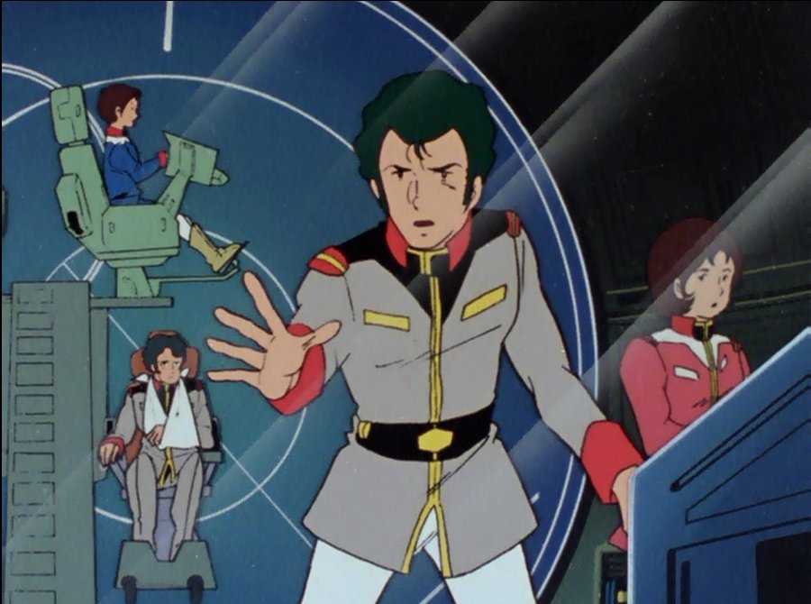 Bright slaps Amuro, who then angrily declares he's never going to pilot Gundam again. Bright leaves to the bridge, saying he is too disgusted to even look at him, and that he'd expected him to surpass Char's abilities up to now. Fraw asks Amuro for the manual to Gundam, and volunteers to operate Gundam herself. Based on Bright and Fraw's words, Amuro has a change of heart and runs off to the hangar to get ready.