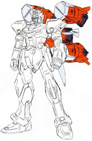 While the Strike never uses the Gunbarrel Striker due to Mu's defection from the Earth Alliance in Mobile Suit Gundam SEED, it is possible to alter the events in Tomo to kimi to Koko de and have Mu use the Gunbarrel Strike during the Battle of Mendel and afterward. This can be achieved by having Kira Yamato work on the MBF-M1 Astray's OS without looking for Birdy. This makes Kira complete the OS faster than he does in the anime, resulting in Erica Simmons giving a spare M1 Astray to the Archangel to replace Mu's FX-550 Skygrasper. Should Kira visit the MS hangar after the battle at Orb, he will find Mu happily talking about how he is now getting used to piloting MS, although he feels bad for his now obsolete Moebius Zero. Overhearing this, Erica offers to modify the TS-MA2mod.00 Moebius Zero into a new custom Striker Pack.