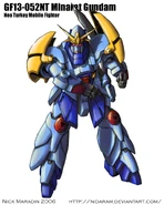 A mobile fighter representing Neo Turkey in the 13th Gundam Fight. As its dub name suggests, the Minaret Gundam is armed with a huge, curved sword, which can be stored on its left hip. The mobile fighter's impressive strength also enables pilot Saette Gyuzelle to use his wrestling skills to great effect, and its high adaptability lets it fight effectively in any environment.