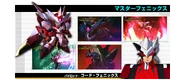 The Master Phoenix is the personal mobile suit of knight warrior Code Phoenix. The overall design of the Phoenix is altered greatly, removing the transformation mechanism to bird mode and the funnel containers. Its relation to the GGF-001 Phoenix Gundam is unclear.