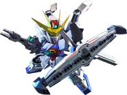 As the Satellite Cannon was damaged beyond repair and there were no spare components, it was replaced with a new backpack. This backpack stores two large beam swords and has two energy tanks for extended flight time (one pod can last for 12 hours), as well as a storage attachment for the suit's new main weapon - the Divider. The Divider was a multifunctional shield created by Kid through the cobbling of items in his stockpile of spare parts. When mounted on the Gundam's back, the Divider's thrusters can be used for flight. It can also be handheld horizontally for the same purpose, while being used for defense. The Divider can also open to reveal six sets of triple beam cannons called "Harmonica Cannon". To replace the destroyed shield buster rifle, Kid developed the beam machine gun based on a pair of battleship-grade beam cannons. This gave the Gundam a higher rate of fire, as well as a more powerful rifle. The Gundam X Divider also retained the Vulcan guns on the torso.