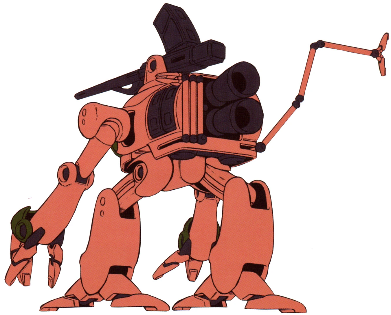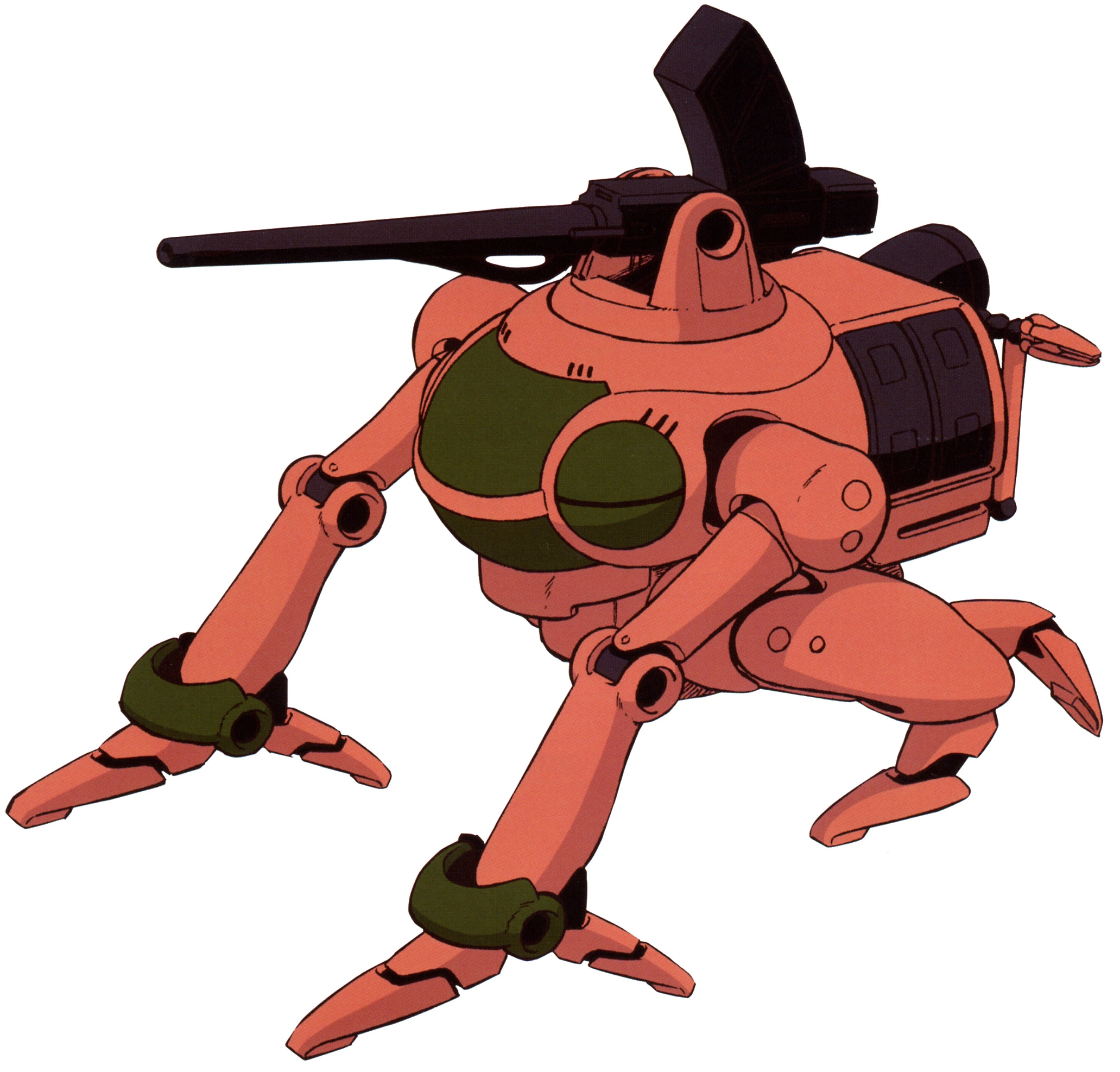 The Gwigsy is a small MS, that due to its size, could be considered a Petite Mobile Suit, these units were used by the Zanscare Empire to maintain order inside its colonies, as such, its firepower was intentionally suppressed to avoid damage to space colonies, armed only with a single machine gun, and a dedicated arm to reload spare magazines, they were used by police forces and military security, and it had surprising high mobility despite its appearance.