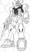 A recreation of the RX-78-2 Gundam as a trial mobile suit. It was built using roughly 52% of the original mobile suit, hence the name "Half Gundam". Any missing parts were taken from modern mobile suits, and was optimized to be as close as possible to the original RX-78's performance. While it lacked the Core Block System, it still retained the Magnet Coating upgrade. The Half Gundam was armed with the standard loadout, except it used the RX-178 Gundam Mk-II's beam rifle.