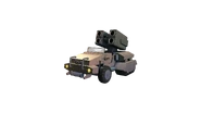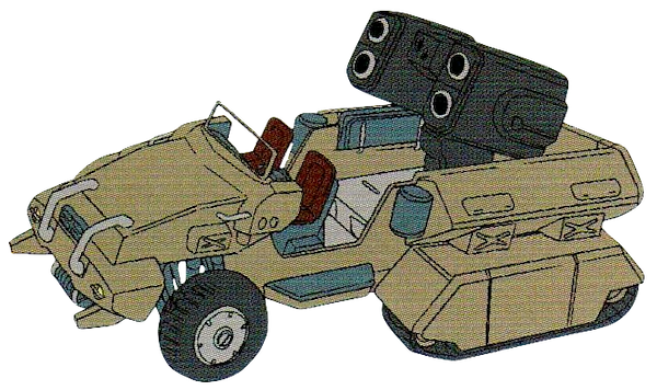 The rear of the vehicle has an crawler treads for use in the desert, and the console is equipped with high-performance electronic devices. There are two types of vehicles: one that can carry soldiers and supplies on its cargo bed, and another that is equipped with a missile launcher.