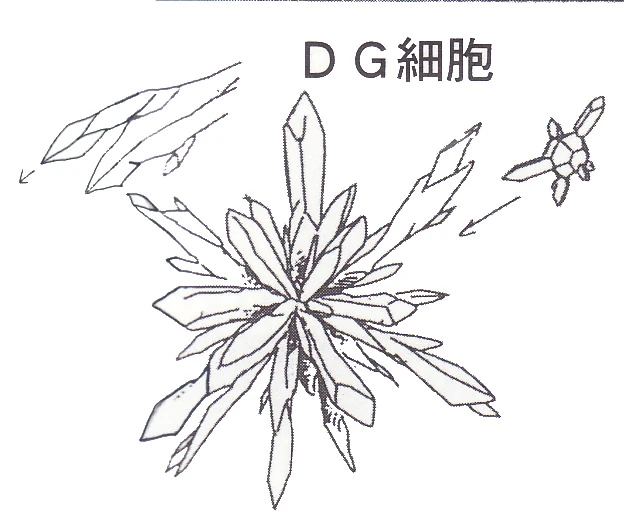 - Artificial cells produced by the Devil Gundam and spread through direct contact. Physically, they appear as a silver hexagonal coating that replicates and spreads over the skin and any other articles of clothing, just stopping at the head. Those who gain DG Cells are mentally and physically corrupted into evil pawns of the Devil Gundam and subsequently gain abilities based on it, although a few individuals, such as Schwarz Bruder, managed to resist possession despite being run solely by DG Cells. Its name probably originated from the first letters of the Devil Gundam's name.