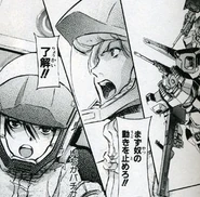 He would later appear in the manga École du Ciel. Unlike Kamille Bidan, who entered AEUG as a civilian, Jack entered AEUG as a professional Federation MS pilot, sent to the lunar city of Amman in U.C. 0087 to test the capabilities of a captured Titans RX-178 Gundam Mk-II. He holds contempt for, and clashes with Marie Albertia's "pirates", who were also involved in the Gundam testing. During the Gryps War, he later serves as leader of the Halloween MS squad aboard the Irish-class battleship Zwickbau.
