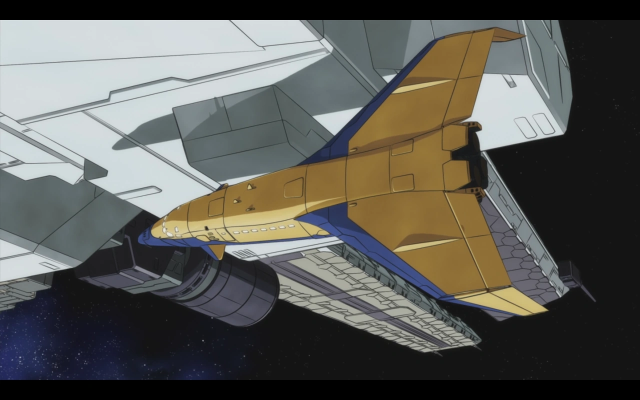This vessel is seen rendezvousing with the Nahel Argama to transport the Neo Zeon prisoner, to Augusta, site of the former Newtype Labs, where she can receive appropriate treatment for a Cyber Newtype.