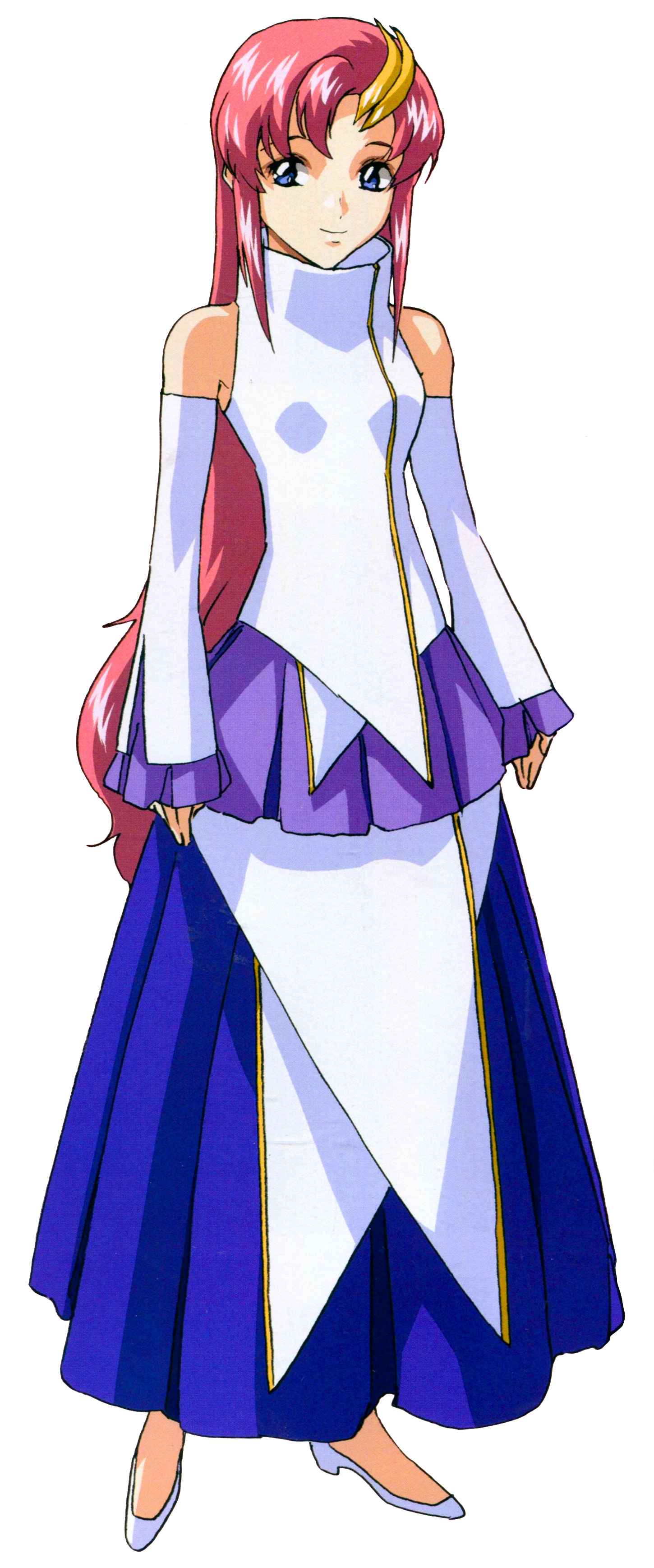 Lacus Clyne was born the daughter of PLANT Supreme Council Chairman Siegel Clyne. She developed a career as an idol singer which brought her enormous popularity in the PLANTs. She was engaged to Athrun Zala for political reasons. Upon their engagement, Athrun went to their home to hand her a bouquet of roses much to her delight. When the First Alliance-PLANT War started, things changed between them as they are both preoccupied with their agendas during the war they rarely got the chance to meet or speak with one another. Despite that, Lacus always anticipated the day she and Athrun will meet again.