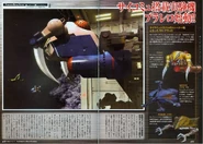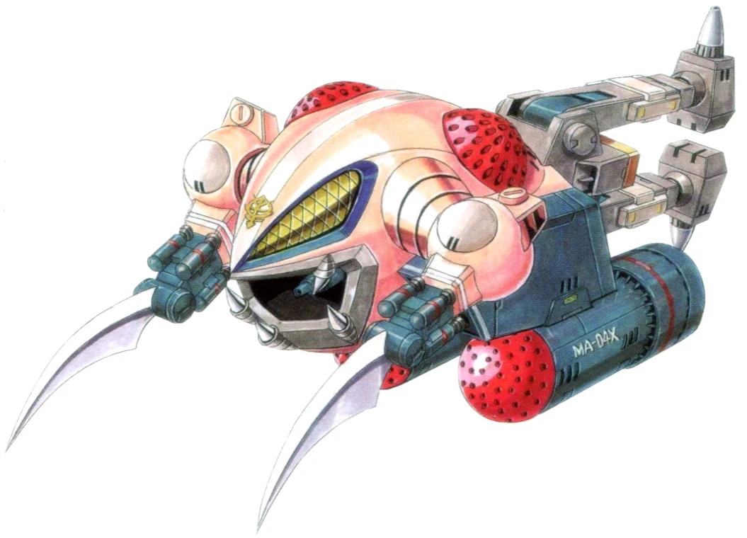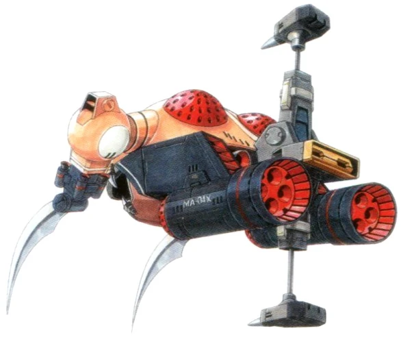 It is equipped with the Psycommu system for piloting the MA and controlling its weapons, which were two wire-guided mega particle guns attached behind the main body and the heat natas.