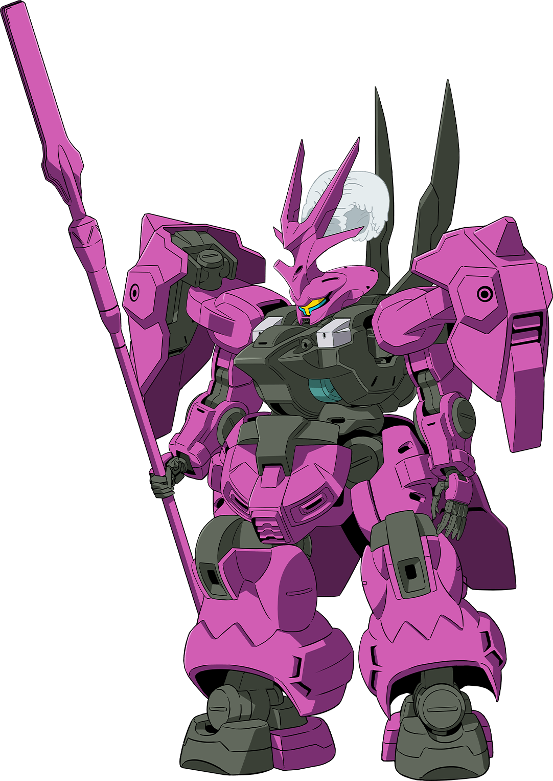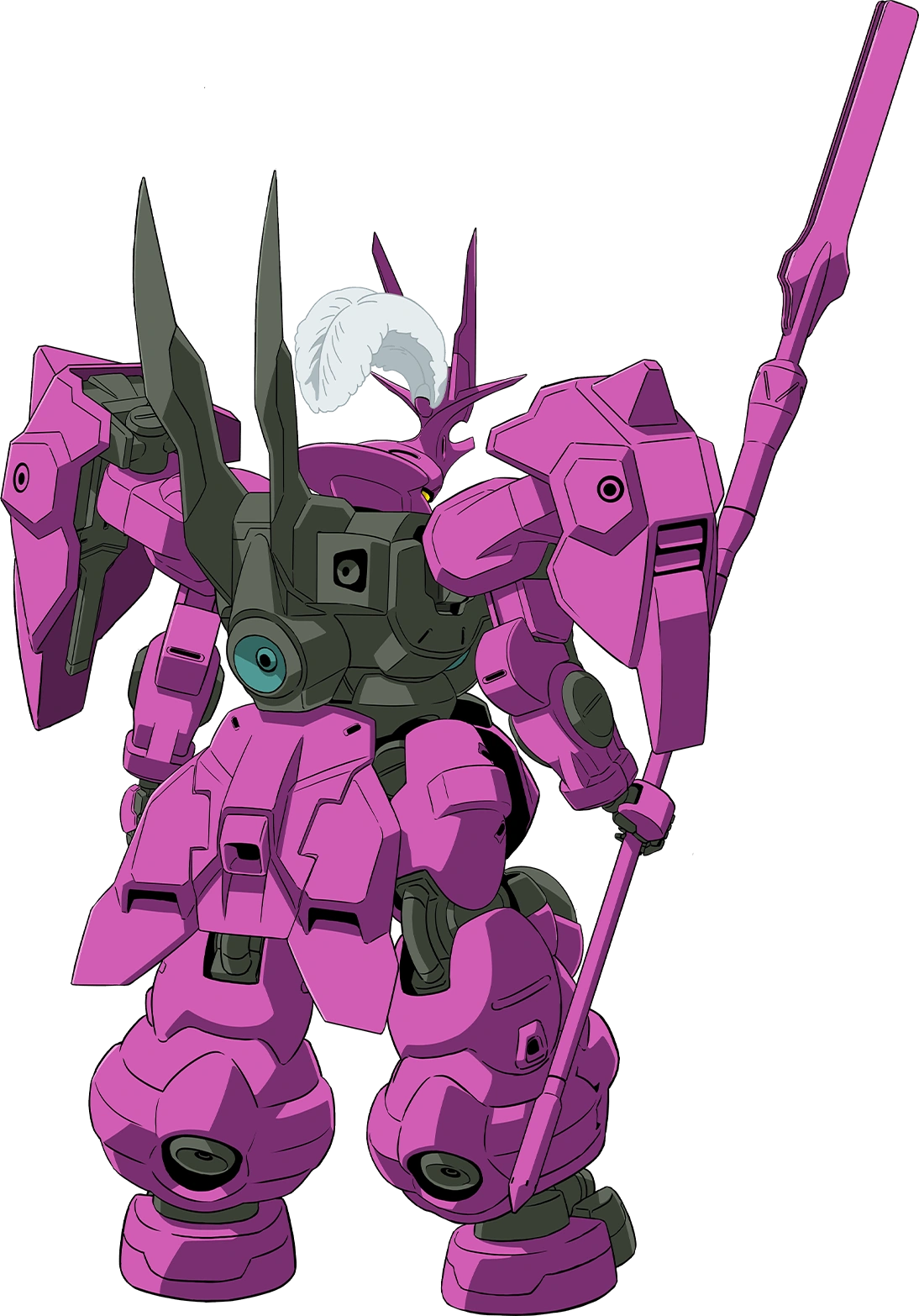 Among the basic MS Dilanza units developed by Jeturk Heavy Machinery, a number have been customized for their pilots.[1] One of these has been modified to suit the piloting style of Guel Jeturk, heir to the company.[1] Its outward appearance has also been tailored to fit Guel's penchant for the ostentatious.[1] Painted in a vivid magenta and fitted with a decorative headpiece, this unit embodies the skill and unshakable self-confidence which made Guel, Asticassia's best pilot.[1] It gives the impression that no other unit could be worthy of such a pilot.[1]