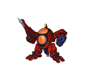 The MRC-U11D Walking Dumpling "WaD" is an anti-personnel suit used by the Moonrace. The petite mobile suit is also used as a cargo transport unit. Thanks to the odd design of the WaD's spine, it is highly mobile and can peek around corners or over cliffs with its upper torso. Armed with several machine guns, the WaD is ideally suited for combat against ground forces. The WaD can also be equipped with weapons such as a Gatling machine gun, joint buster and rocket grenade launcher to attack larger mobile suits. However, because of its small size, the WaD is more susceptible to damage from primitive Earth weapons.