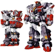 - Mounted on each forearm is a beam gun. The arms can be detached from the elbow joint via cable connections, allowing for multi-directional attacks.