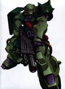 • When Bernie repaired his Zaku II FZ, he used junk parts procured from the wreckage of GM type MS, indicating that the industrial standards for this machine, which was produced under the United Maintenance Plan, were unified with those of the Federation Forces.