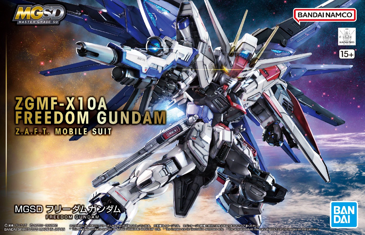 ZGMF-X10A Freedom Gundam | Mobile Suit Gundam SEED | ¥3,900 | 2023 January | First release in the MGSD line. Also the first MGSD kit from the Cosmic Era timeline. | Manual |