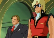 Carbine was the chairman of Anaheim Electronics and the biggest contributor to the AEUG during the Gryps Conflict. However, due to the benefit of weapon sales, he also provided materials and mobile suits to Titans.
