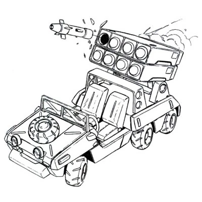 The Missile Car is a small six-wheeled combat vehicle equipped with a wire-guided missile launcher for defense of space colonies. It is an electric vehicle powered by batteries in order to avoid polluting the colonies' closed atmospheres. Unfortunately, the missiles' power was insufficient to destroy a MS-06F Zaku II.