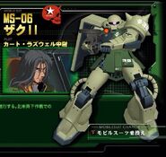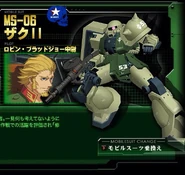 Stage 3-1 in Dual Stars of Carnage. As Dozle Zabi deploys in the Big Zam, the Dual Stars also deploy in their new MS-06R-2 Zaku II High Mobility Type. Shin Matsunaga asks them to stop the Federation Forces from pushing deeper into Solomon.