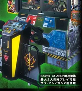 Spirits of Zeon is an arcade light gun shooter playable by up to two players. Players control one of two Zaku pilots, Kurt Roswell and Robin Bradshaw.