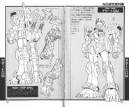 Developed based on the RGM-79F GM Land Combat Type, the RGM-79F Desert GM was part of the GM enhancement plan that was meant to create machines for operating in both desert and frigid regions. While the development of the RGM-79 GM had proven fairly successful in holding battle lines, the gap in pilot experience in skirmishes was clearly apparent, and the rapid training of pilots and adaptation to localized battles remained a top priority. To adapt to fighting in the desert, all the joints and intakes of the Desert GM received anti-dust treatment. The Desert GM also featured improved defense against projectiles, but rather than being equipped with heavy armor that would restrict mobility on exposed desert terrain, it was instead fitted with reactive armor. Such armor incorporated explosive charges that detonated outward on impact, reducing the internal damage sustained, increasing survival rates, and as a result allowing for improved collection of combat data. Similar to the GM Land Combat Type, the Desert GM is armed with a beam saber, railcannon and an optional beam spray gun.