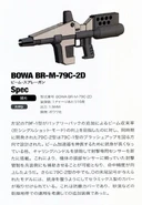 - While the BR-M-79F-1 Beam Spray Gun used by the GM Land Combat Type aimed to improve beam convergence (in single-shot mode) by adding a battery pack, the BR-M-79C-2 Beam Spray Gun, developed around the same time, was designed as an improved version of the BR-M-79C-1 Beam Spray Gun used by the RGM-79 GM. The barrel was lengthened to accommodate an extended beam accelerator, and the carrying handle was eliminated in favor of a new dedicated firing sensor. This allowed the weapon to assist in fire control, which previously relied on the mobile suit's head sensors, and appears to have improved accuracy. Furthermore, BR-M-79C-2 models with the "D" suffix feature a ceramic cover attached to the barrel. This dust cover was added for use in arid regions such as deserts.[1]