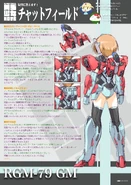 Feedback from Gundam's data is also used during development of GM suit. Unlike its mobile suit counterpart, the GM suit isn't cost down version of Gundam but being developed at the same time with different operating concept. While Gundam is a flagship model suit, GM is a general purpose suit.
