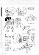 - Three hand grenades are carried in each of the grenade racks mounted on the side of the waist. These throwing weapons are similar to the ones used by the Jegan, and can be launched directly from the rack, functioning as self-propelled projectiles.