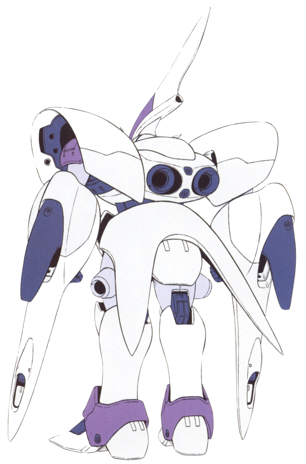 The Bertigo is a Newtype-use mobile suit developed by the Space Revolutionary Army (SRA) during the 7th Space War, and was intended to be an escort unit for the MAN-003 Patulia during Operation Lilac. Because mass balance was important in the design of this machine, everything is designed to be equal on both sides, and all armaments are installed or stored internally, eliminating any weapons that might upset the balance. This allowed the machine to engage in high mobility combat without losing its balance, and as a result, it gained excellent mobility and high performance comparable to a Gundam type MS. Its greatest feature is its 12 Bits, which are remote-controlled weaponry usable only by those with excellent Newtype abilities. These small beam guns can act independently of the main body, and are used to shoot at different targets simultaneously or launched a concentrated attack on a target from various locations.