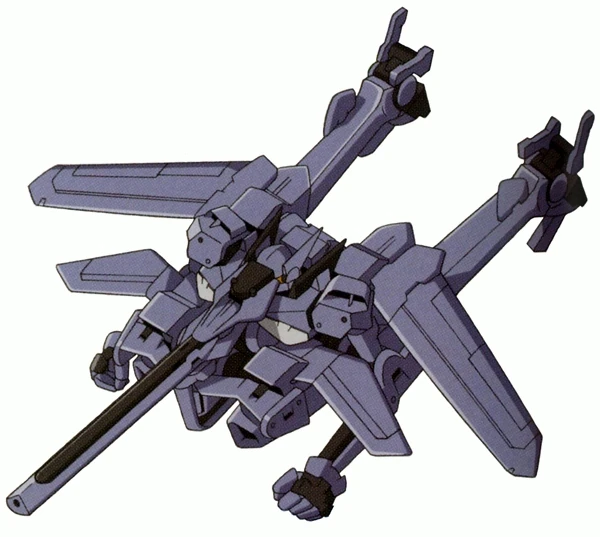 Like the Realdo, the Flag can transform between the humanoid MS mode and fighter jet-like Flight mode.[1][2][5][9] The main purpose of the Flight mode is not for travelling within the Union's territories, but for deployment to any location around the world as part of the Union's self-declared duty of being the "world's police".[10] Unlike the Realdo and other earlier flight capable mobile suits, the Flag is designed to change modes without the need for parts swapping in bases.[1][2][9][11] However, it was not originally intended to transform in midair or in combat as doing so places high burden on the joints, but highly skilled pilots soon managed to achieve it.[3][11][12][13] This is thanks to the advanced piloting technique known formally as 'Graham Maneuver', and more commonly as 'Graham Special', that is named after its inventor, Graham Aker.[6][12][14]