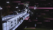 The Salamis-class is able to deploy flares for signaling other ships or as a form of defensive countermeasures against incoming missiles. One cruiser was seen launching flares while launching from Jaburo after a Zeon experimental weapon attempted to shoot down the vessel during its ascent to space.