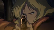 When rioters begin attacking Texax Colony under the mistaken belief they were pro-Zeon supporters, Sayla gave shelter to several civilians and ordered the house to be barricaded. She defended her home with a Winchester rifle, killing and injuring many of the attackers. During the brief ceasefire, Sayla learned that Teabolo expired during the fighting. The battle was interrupted when the rioters saw the light from explosions at nearby Miranda which destroyed a Zeonic passenger ship that Roger was on. Char stood atop the window above the Mass home in his MS-06S, this red mobile suit of his was quickly noticed by Sayla. [1]