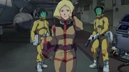 While searching for an escape route, an explosion blows Sayla and Amuro from each other, but Amuro uses his Newtype powers to telepathically communicate with both Hayato and Kai, informing them of Sayla's location, and allowing them to pull her out A Baoa Qu. Like the others, she initially believes that Amuro was left behind inside the base, but as Kikka first senses him coming, she is relieved to find him safely returning back to them inside the Gundam's Core Fighter.