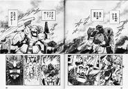 In "Super Class," the confrontation is lengthened and expanded. It demonstrated that, despite the Scud Gundam's incredible ordinance, it was of no match against the Gundam Maxter, who easily closed in and punched the Gundam's head off, emerging mostly unscathed.