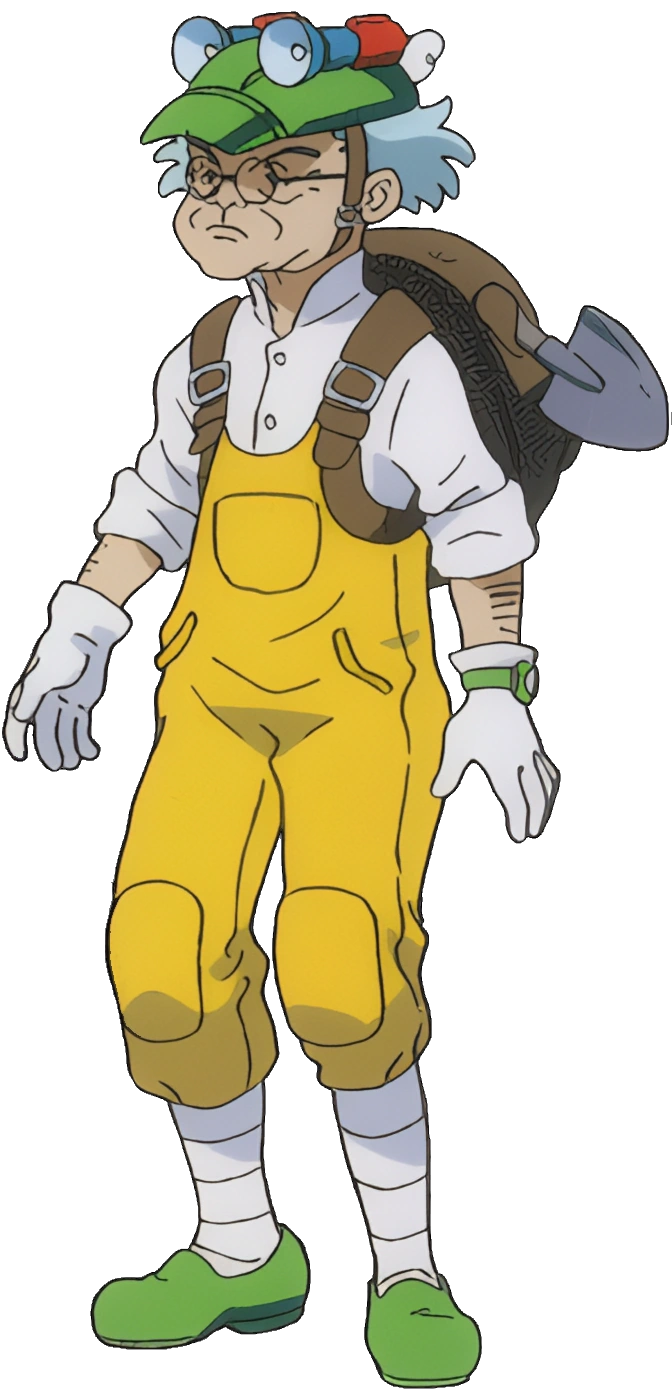 An elderly archeologist searching for remnants of the Earth's "dark history". He works on the excavation of mobile suits which are used by the Militia to fight the Moonrace.
