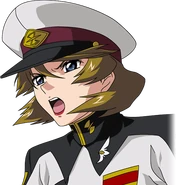Having lost both the battle and their purpose to remain in Orb, Gladys took control of the remaining ZAFT forces and ordered a full withdrawal. She later sent a report of the battle to Chairman Durandal, who acknowledged and thanked her for the prudent decision to retreat. She later watched Cagalli's broadcast denouncing Durandal's hostile methods before it was interrupted by Lacus Clyne, who called out Orb as a nation for protecting a man as wicked as Djibril. To everyone's shock, a second Lacus appeared, claiming to be the true one.[13] This Lacus, however, called out Durandal's shady decisions and various opportunistic moves for his ulterior motives. At the same time, she expressed disdain for Lord Djibril and reiterated Orb's original stance for peace and neutrality in the matter.[14]