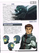 He is an extremely capable commander and subordinate, despite his blunt personality. For this reason, he is trusted by his subordinates, who are all crooks. He is not very attached to money, and even when he obtains gold hidden by Zeon ground troops who have escaped into space, he generously distributes it to the troops who have become his allies in order to survive the battlefield. Although he is willing to take on anyone who stands in his way, regardless of whether they are Federation or Zeon, he refuses to kill unnecessarily. For this reason, he gains a certain amount of trust from the remaining Zeon forces on the ground as a man who understands them.