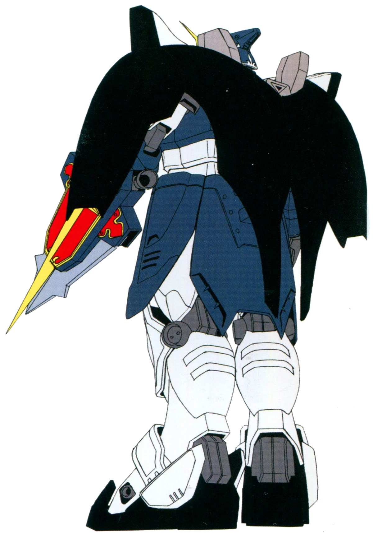 The XXXG-01D2 Gundam Deathscythe Hell (aka Deathscythe Hell, or Gundam Zero-Two) is the upgraded version of XXXG-01D Gundam Deathscythe in Mobile Suit Gundam Wing. It was redesigned by Hajime Katoki for the movie sequel New Mobile Report Gundam Wing: Endless Waltz. It is piloted by Duo Maxwell.