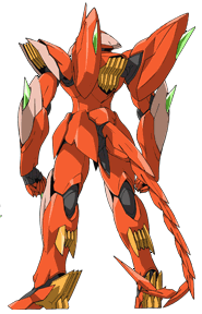 Developed in A.G. 160s, the Ghirarga is a new X-Rounder-use mobile suit and the successor of the xvm-zgc Zeydra.[1] It is based on an experimental machine designed for commander-use and has since been modified to become Zeheart's personal unit.[2] The Ghirarga's main weapon is the handheld Ghirarga Spear, which can generate beam blades from its tips, and achieve high penetrating power through fully utilizing the mobile suit's high mobility.[2] It also has a powerful Beam Buster built into its chest, a removable Ghirarga Tail, and Beam Vulcans/Beam Sabers in its palms.[2] Additionally, through the use of the "Mode X" configuration, the Ghirarga's X-rounder compatibility is enhanced and it can utilize the "X-Transmitter" to deploy the Ghirarga bits, remote weaponry capable of performing all-range attacks.[3][4]