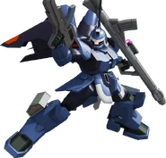A customized, blue-colored ZGMF-1017 GINN used by Elijah Kiel, a member of the Serpent Tail mercenary group. Its basic performance is no different from that of a normal GINN, but its head's crest-shaped sensor array has been replaced with a buster sword, which served as a last resort weapon. After being damaged in battle with Gud Vair's customized GINN, it was repaired using parts salvaged from Vair's GINN, resulting in its outward appearance changing to a mix of red and blue. The repaired suit is renamed as Elijah's GINN Custom. Due to Elijah's friendship with Gud, the repaired GINN holds great sentimental value and he continues to pilot it even as it became outdated.