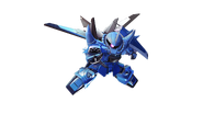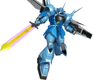 For defense, an anti-beam coated physical shield can be mounted on the left forearm or handheld. The shield also stores the MMI-558 "Tempest" Beam Sword.