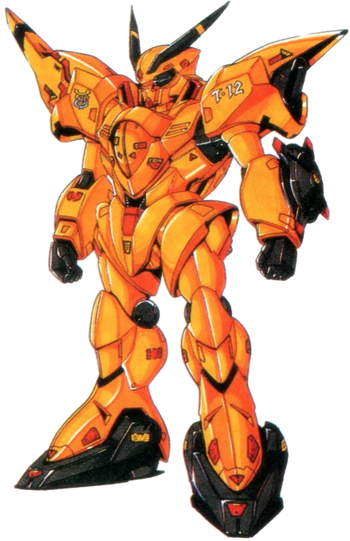 The ZMT-S12G Shokew was a test machine developed for gathering data for the the next generation of the Zanscare Empire's mass production mobile suit. It was very versatile and easily to pilot. The forehead is equipped with a pair of V-shaped blade antennas, and both eyes are equipped with a multi-sensor. The Shokew obtained satisfactory test results, and its data was used to create a better mass production machine, the ZM-S22S Rig Shokew.